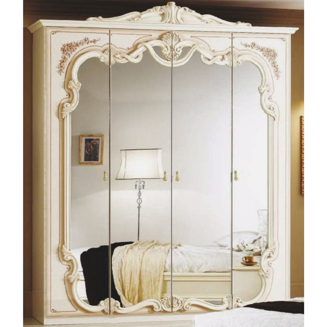 Четырехстворчатый шкаф Диана (беж) от Российской фабрики «ДИА мебель» выполнен в бежевом глянцевом цвете, с зеркальным фасадом и деревянными рельефами. Такой вместительный и не габаритный шкаф, не займет много места даже в маленькой спальне. Ценители изысканный интерьеров по достоинству смогут оценить спальню "Диана".