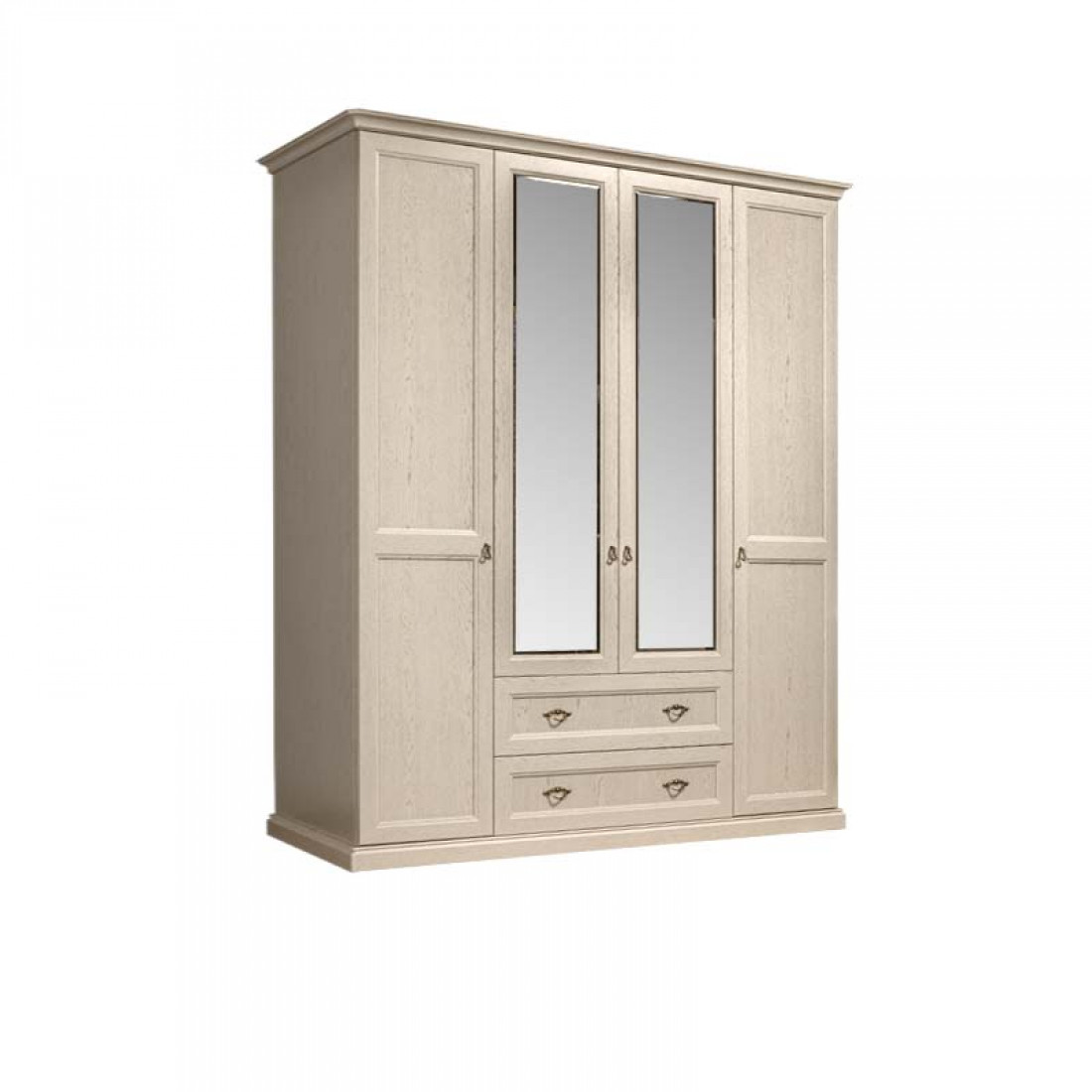 Четырехдверный шкаф с зеркалами для платья и белья с выдвижными ящиками ВНШ1/41 изготовлен из ламинированной плиты Эггер (Австрия), а также плиты совместного итальянско-российского производства «Карелия ДСП», являющегося лучшим в России производителем мебельных плит, и покрыт итальянским лаком превосходного качества.