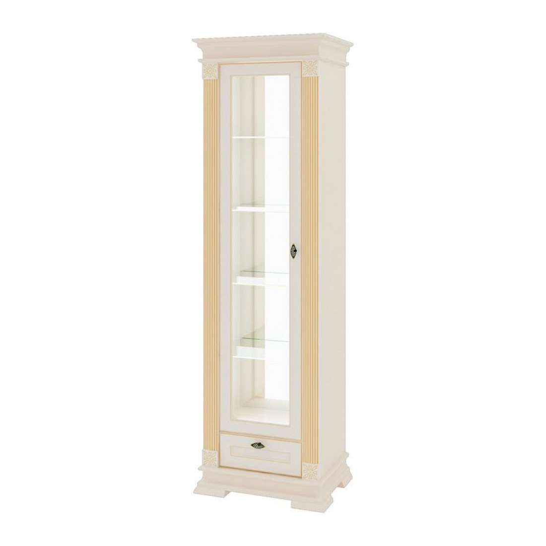 Стеклянные полки за прозрачной стеклянной дверцей можно дополнить подсветкой.