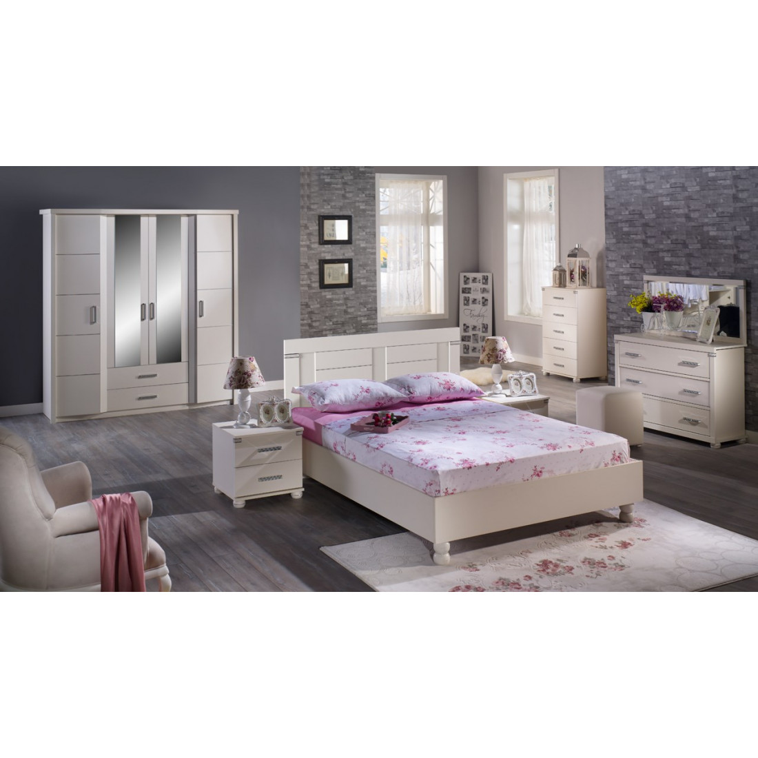 Цветовое исполнение спальни - белая, но он есть также и в других цветах - венге и орех.