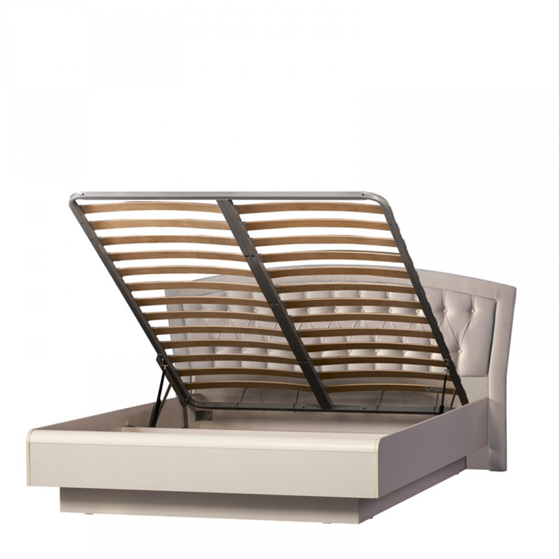 Корпус: ДСП, декор – кремовый белый. Основание кровати – ламели